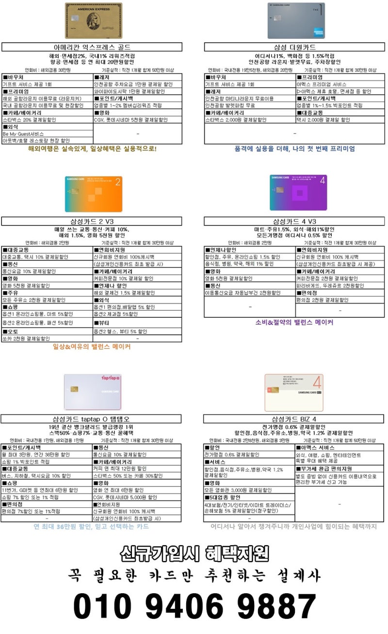 삼성카드 설계사 진행으로 발급하고자 하는 종류에 대해 좀 더 확실하게 체크해보고 결정했으면 합니다.지피지기백전백승이라고 하잖아요 확실히 알고 사용하면 더 많은 혜택을 받을 수 있는 부분이 있으니 꼭 문의하시고 선택해주세요